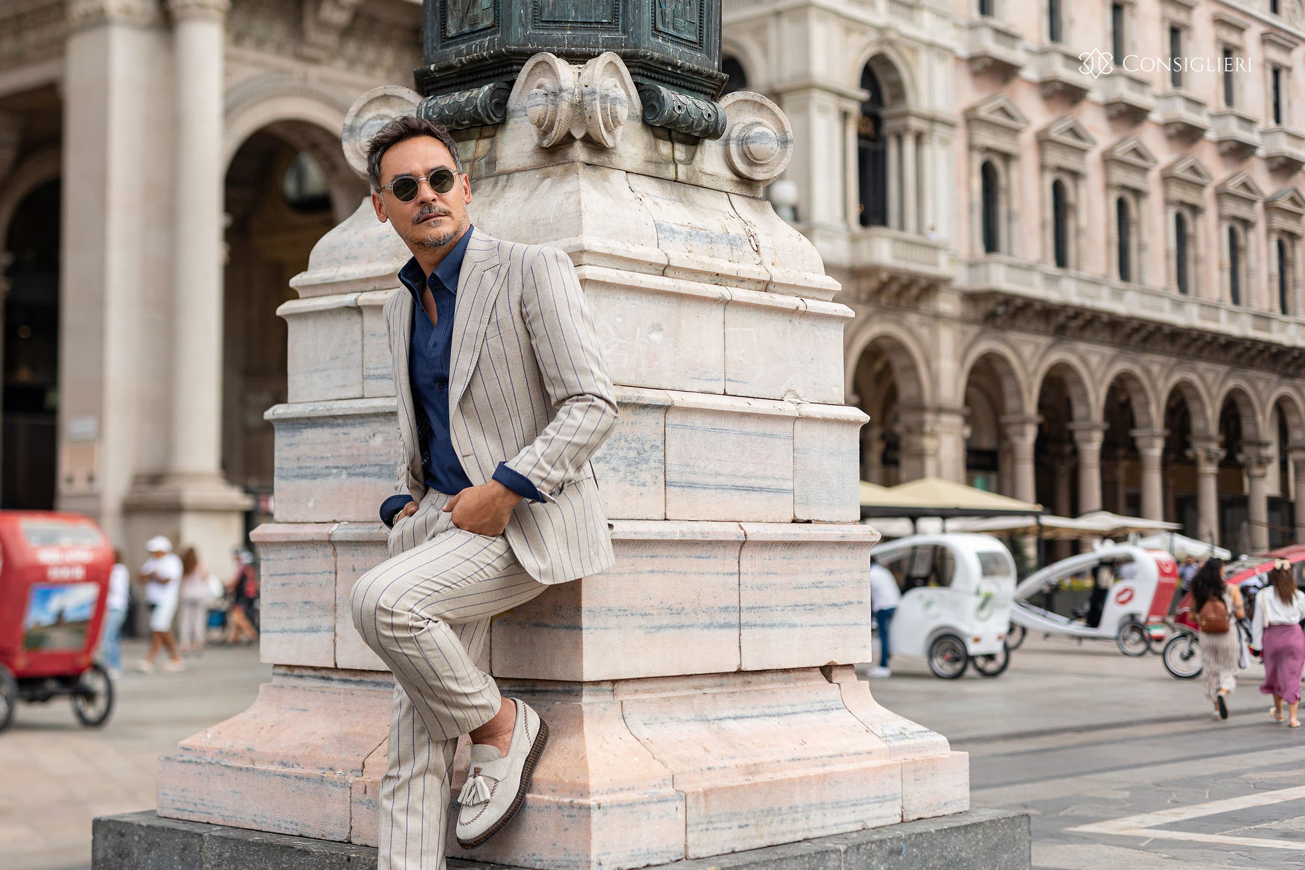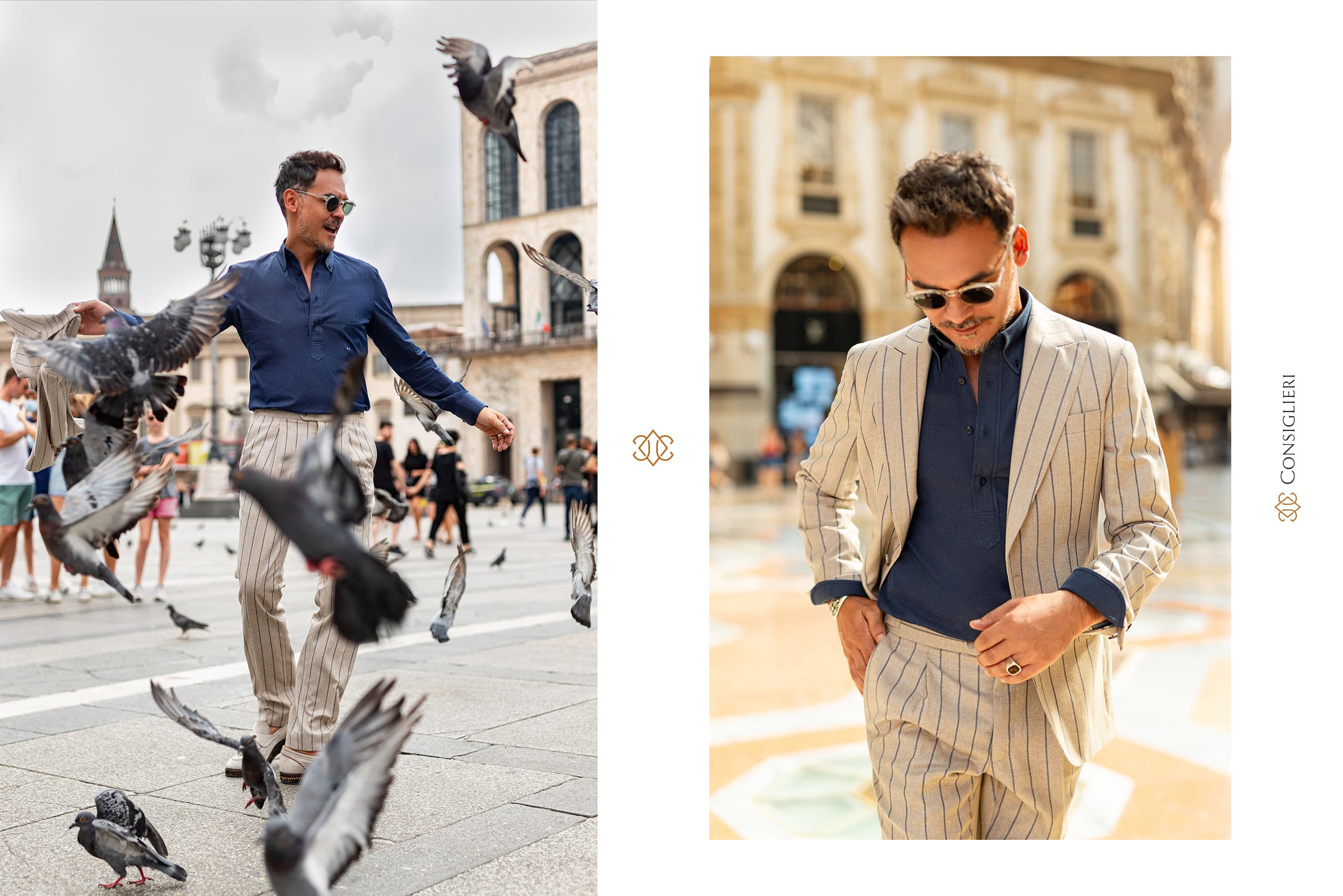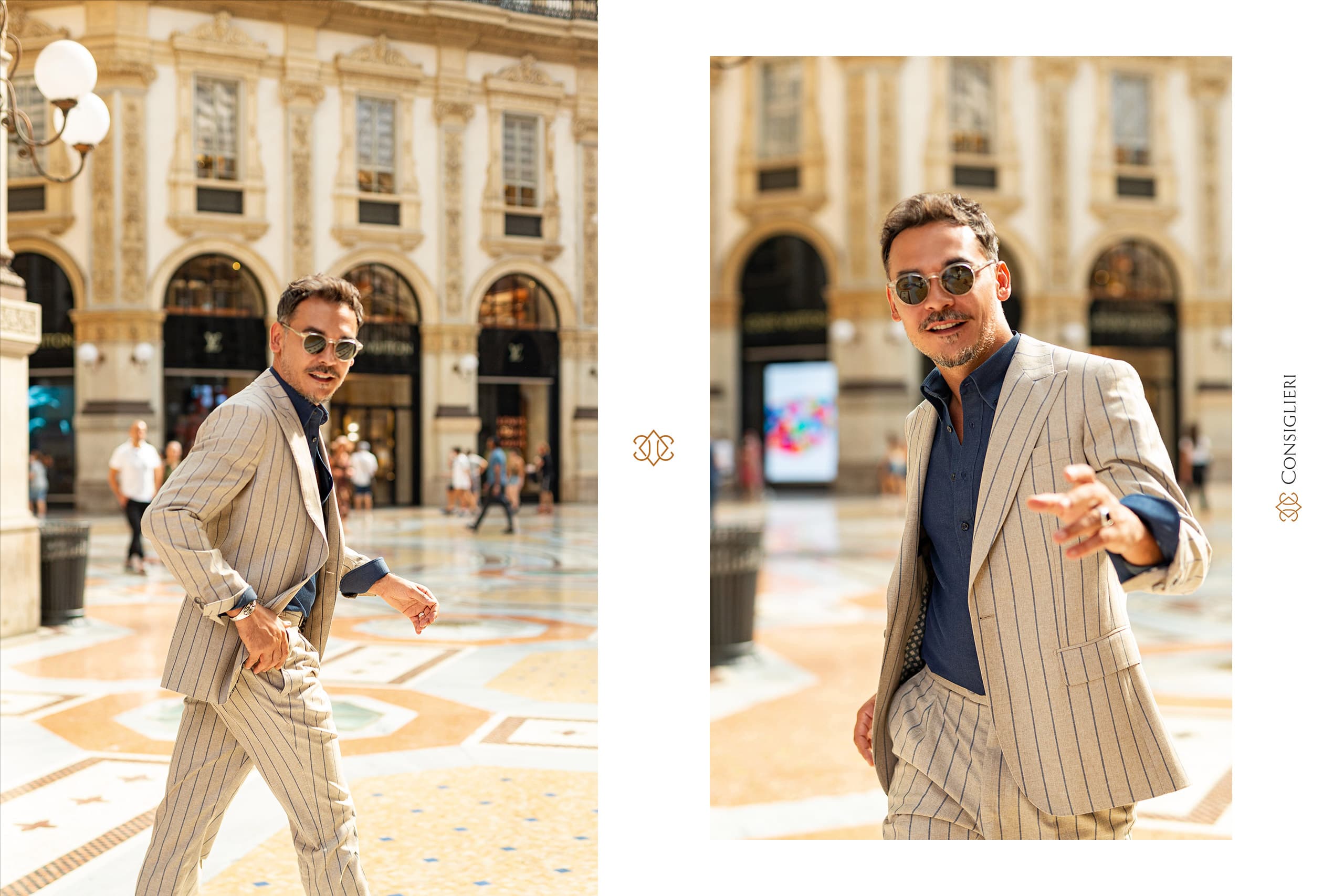 Realizată în decorul orașului Milano, una dintre capitalele modei, ședința foto a pus accent pe elementele cheie ale garderobei masculine și pe starea de spirit pe care ți-o impune atmosfera italienească definitorie pentru gusturile în materie de estetică și lifestyle ale lui 𝐑𝐚̆𝐳𝐯𝐚𝐧.