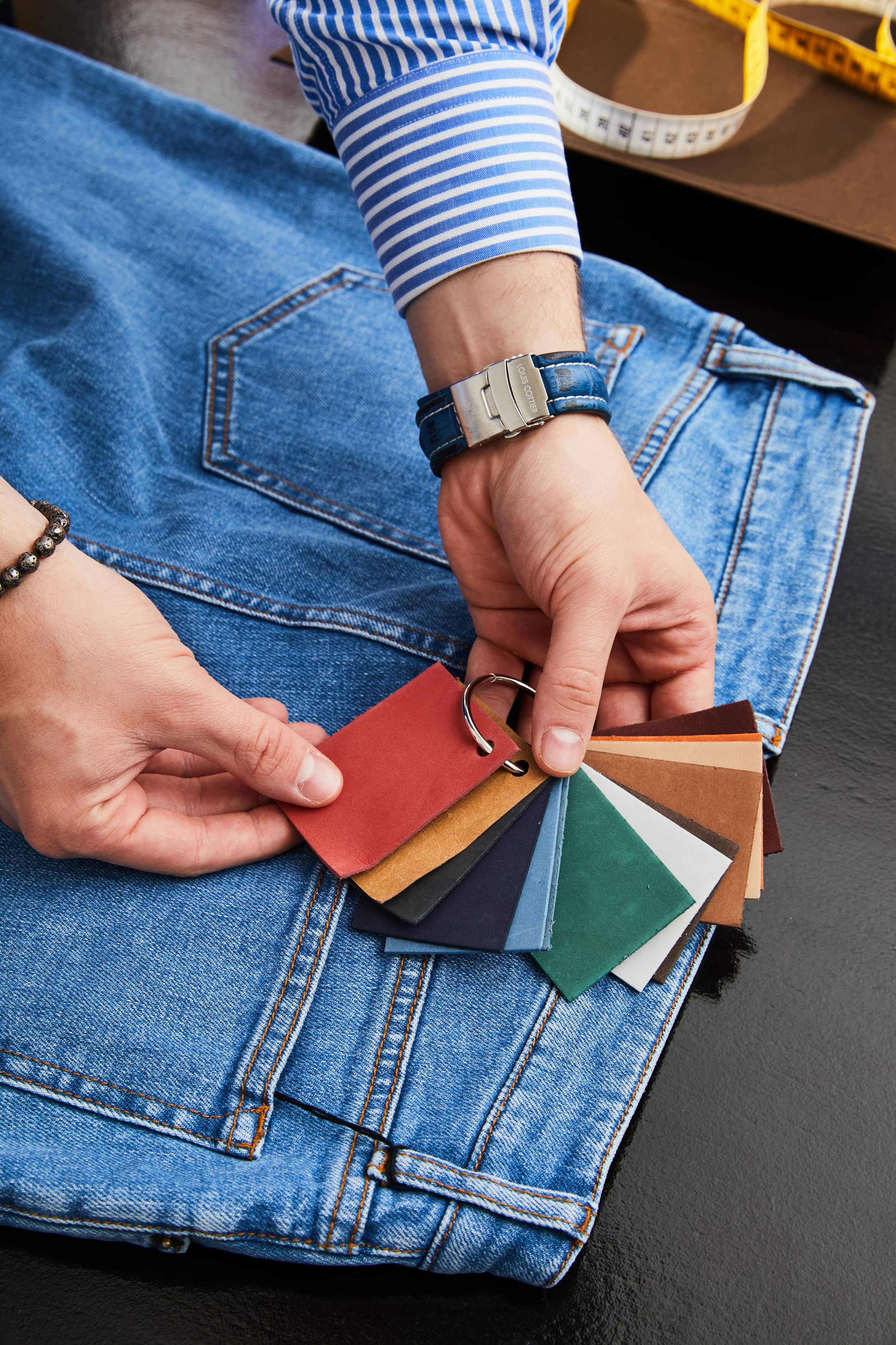 Procesul începe în showroom-ul nostru, unde veți alege dintr-o gamă variată de denim-uri CANDIANI. Apoi, personalizați fiecare aspect al jeansilor - de la design la accesorii, garantând un produs final care nu este doar pe măsura dvs., ci și o expresie a stilului personal.