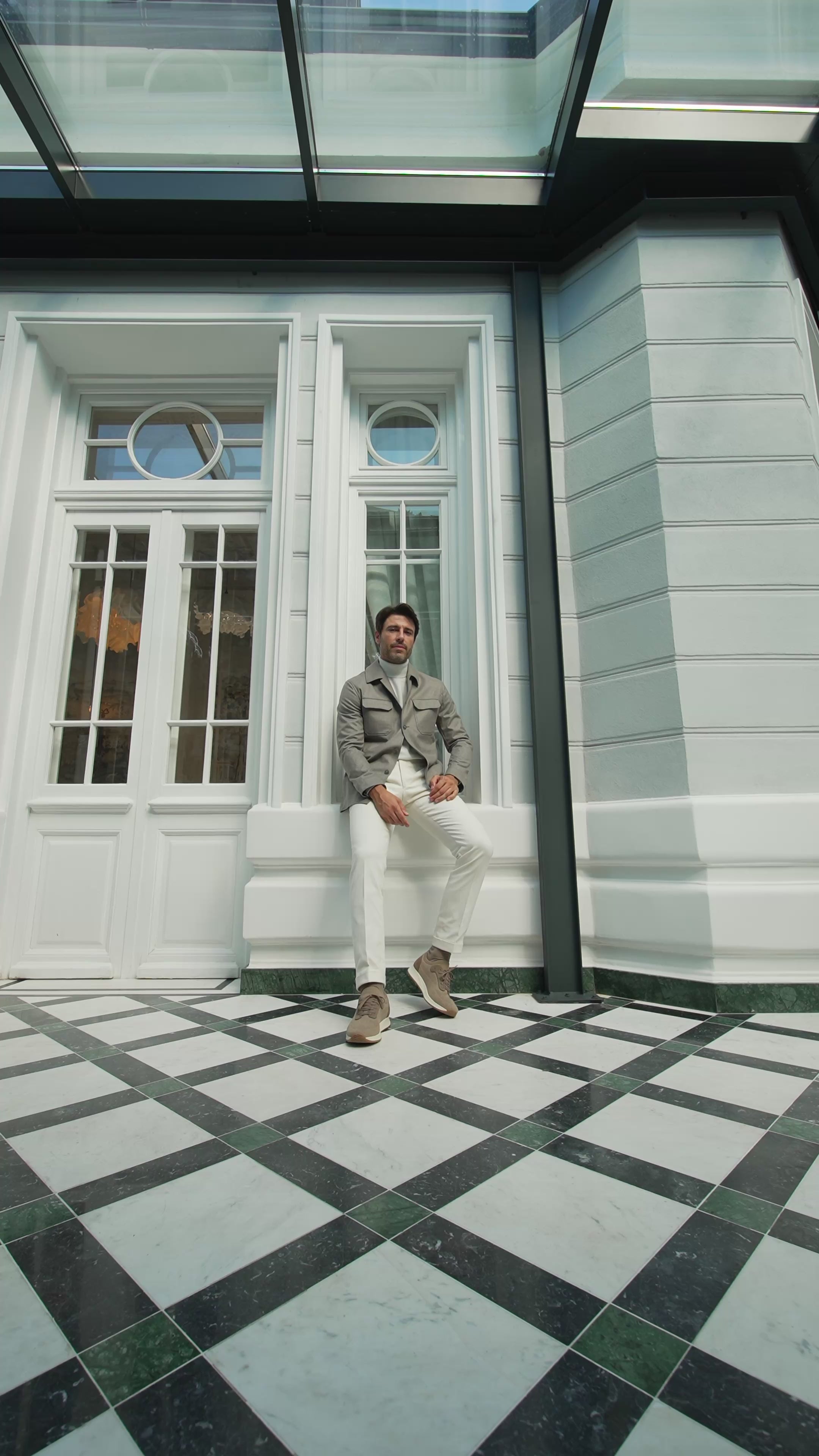 O Utility Jacket realizată din țesătură prețioasă Loro Piana, ce combină funcționalitatea modernă cu rafinamentul atemporal. Silueta minimalistă și textura sofisticată definesc un look casual, dar impecabil, perfect pentru un gentleman care apreciază luxul discret.