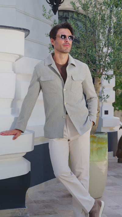 O Utility Jacket realizată din țesătură exclusivistă Loro Piana, reinterpretată într-o formă casual, dar elegantă, ce exprimă luxul discret prin textură și simplitate sofisticată. Croiala modernă și tonurile neutre îi oferă versatilitate, transformând-o într-o piesă esențială a garderobei masculine.
